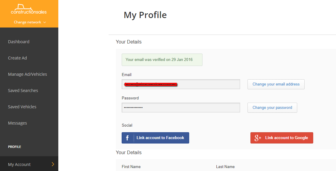 To change your email, name or phone number on your account, click here and sign in using your existing account details (email and password).
